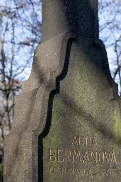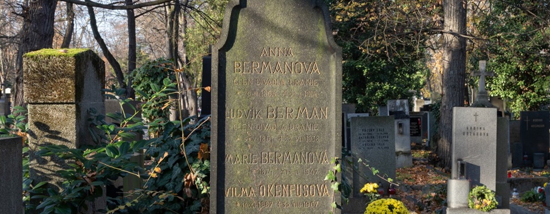 Tato hrobka je ryze herecká. Spočívají zde herečka Anna Bermanová Suková (1863--1914) a herec Ludvík Berman (1861--1938), kteří působili v divadle v Plzni a na scéně divadla Uranie. Anna byla sestrou herce, režiséra a ředitele několika divadel Viléma Josefa Suka, jehož dcera, herečka Anna Suková (1879--1905) je zde také pohřbena. Hrobka je rovněž místem posledního odpočinku Hedy Bulejkové Markové (1906--1960), divadelní a filmové herečky, která se narodila do rodiny režiséra Vladimíra Marka a operetní herečky Věry Skalské. Na brněnské konzervatoři absolvovala obor hry na harfu a později vystupovala v pražských divadlech Uranie, v Tylově divadle, Divadle Vlasty Buriana a kočovných společnostech. Spolu se svým manželem, hercem Štěpánem Bulejkem (1914--1976) se po období stráveném mimo metropoli vrátili do Městských divadel pražských. Hrála například ve filmech Neznámá kráska, Májové hvězdy, O medvědu Ondřejovi nebo Probuzení.